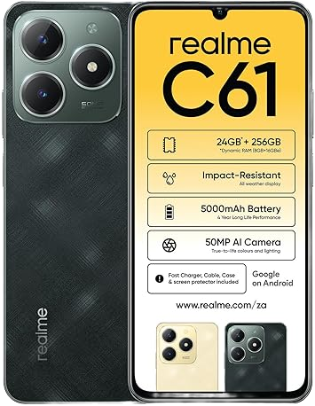 • Realme C61 4G Dual Sim 256GB Realme C61 4G Dual Sim 256GB R5,499.00 Original price was: R5,499.00.R4,399.00Current price is: R4,399.00.