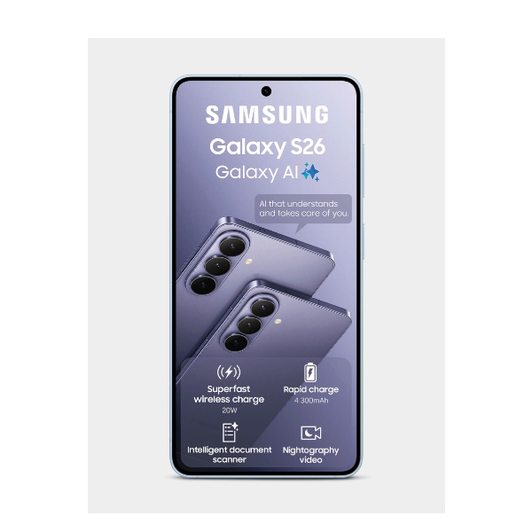 Crafted with a unified corner radius that flows seamlessly across the device, the Galaxy S26 5G feels like an extension of your hand – slim at just 7.2mm and lightweight at 167g. Its translucent camera island unifies the lenses into a polished, next-level feature, while the Armour Aluminium frame and Corning® Gorilla® Glass Victus® 2 on both front and back ensure premium durability. Dive into adventures with IP68 dust and water resistance, capable of withstanding up to 1.5m of freshwater for 30 minutes. Available in captivating colours like Cobalt Violet, Sky Blue, Black, and White, it’s a statement of style that’s built to impress.