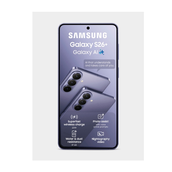 Embrace a design that’s as bold as it is balanced – the Galaxy S26+ 5G measures 158.4 x 75.8 x 7.3 mm and tips the scales at a featherlight 190g for effortless all-day handling. Its translucent ambient camera island blends seamlessly into the frame, creating a unified aesthetic that’s premium from every angle. Fortified with an Armour Aluminium 2 frame and Corning® Gorilla® Glass Victus® 2 on both sides, it shrugs off daily demands while boasting IP68 resistance against dust and water (up to 1.5m of freshwater for 30 minutes). Choose from stunning South African hues like Cobalt Violet, Sky Blue, Black, and White – colours that capture your style and turn heads wherever you go.